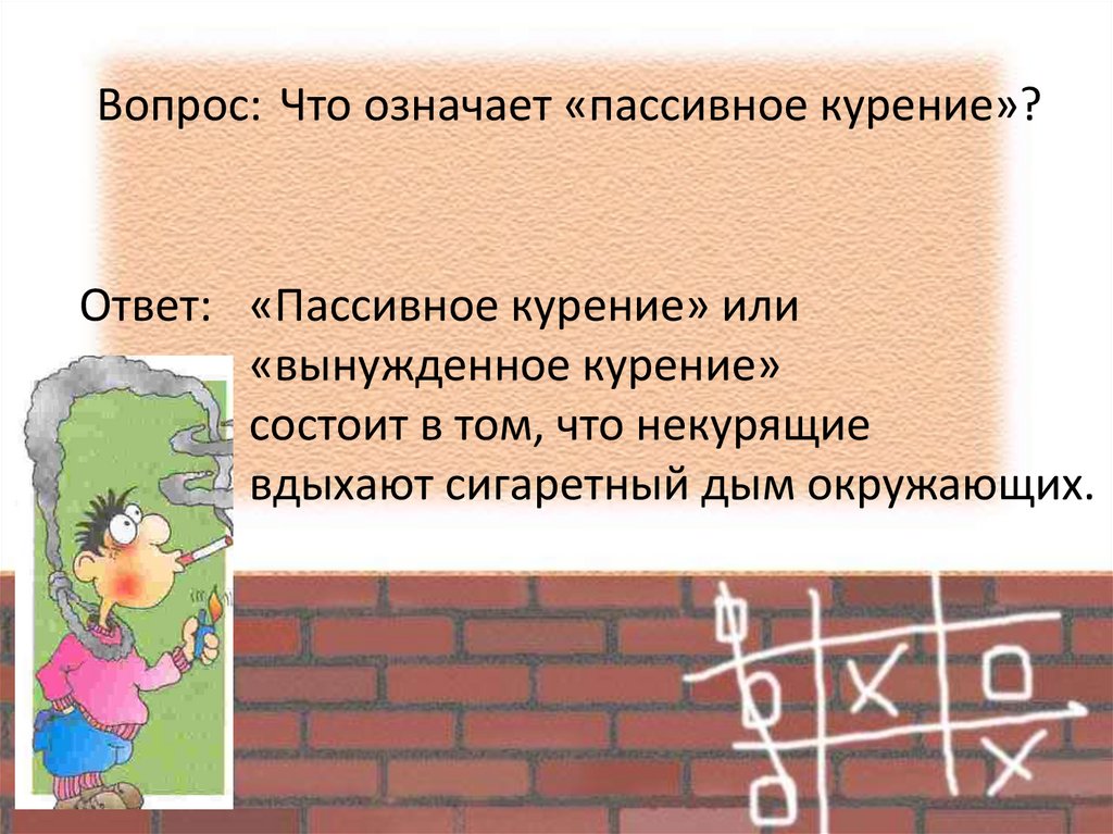 Вопрос: Что означает «пассивное курение»?Ответ: «Пассивное курение» или