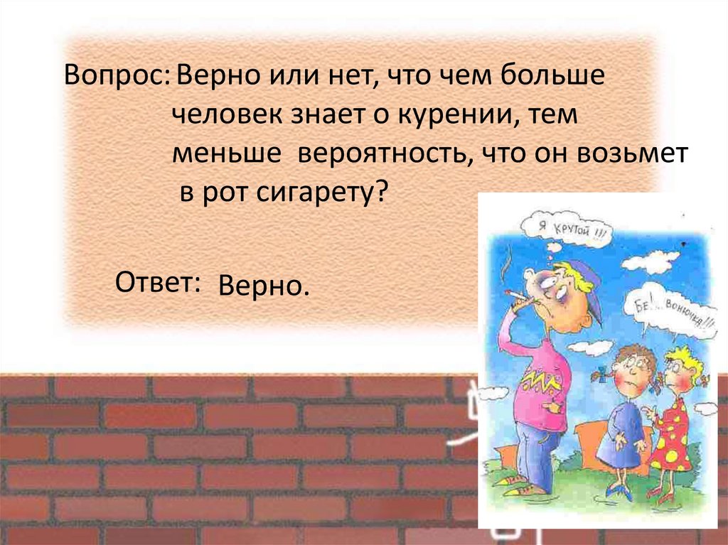 Вопрос: Верно или нет, что чем большечеловек знает о курении, тем