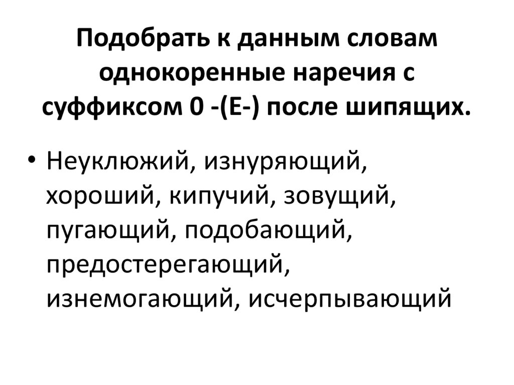 Подобрать к данным словамоднокоренные наречия с