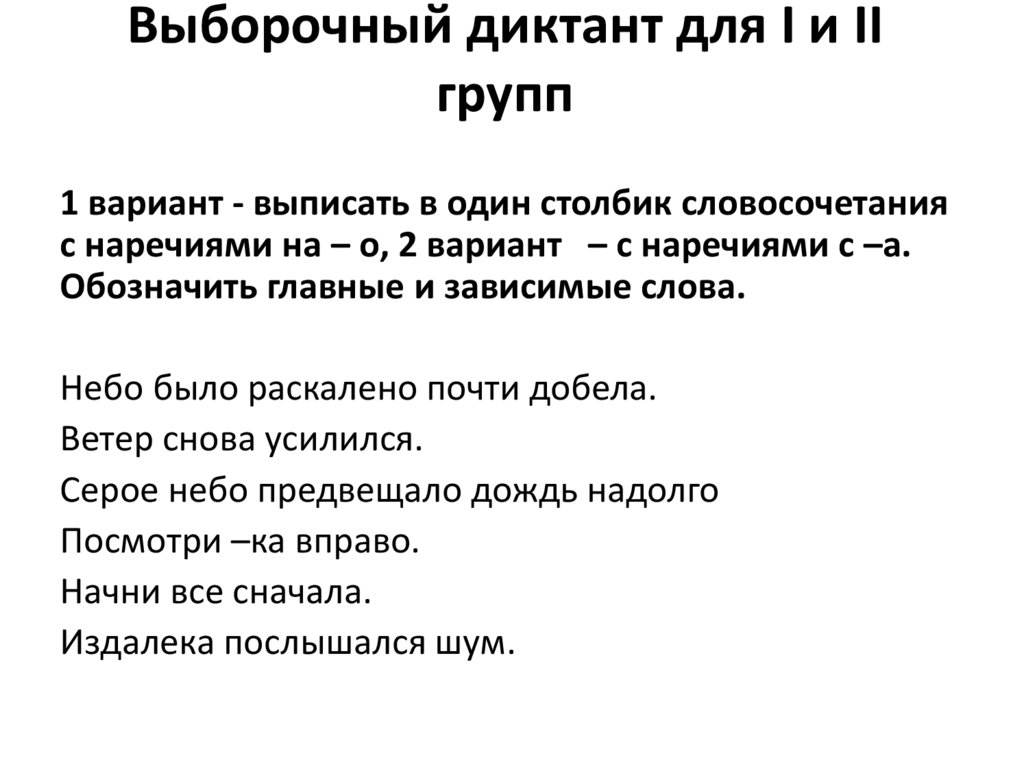 Выборочный диктант для I и IIгрупп