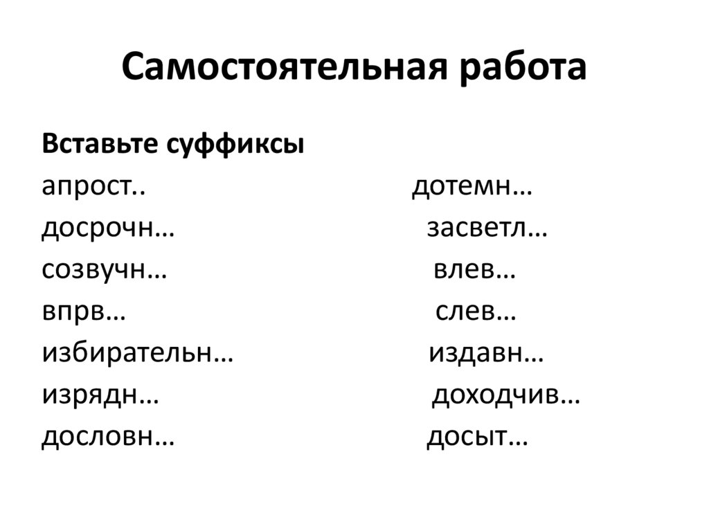 Самостоятельная работаВставьте суффиксы