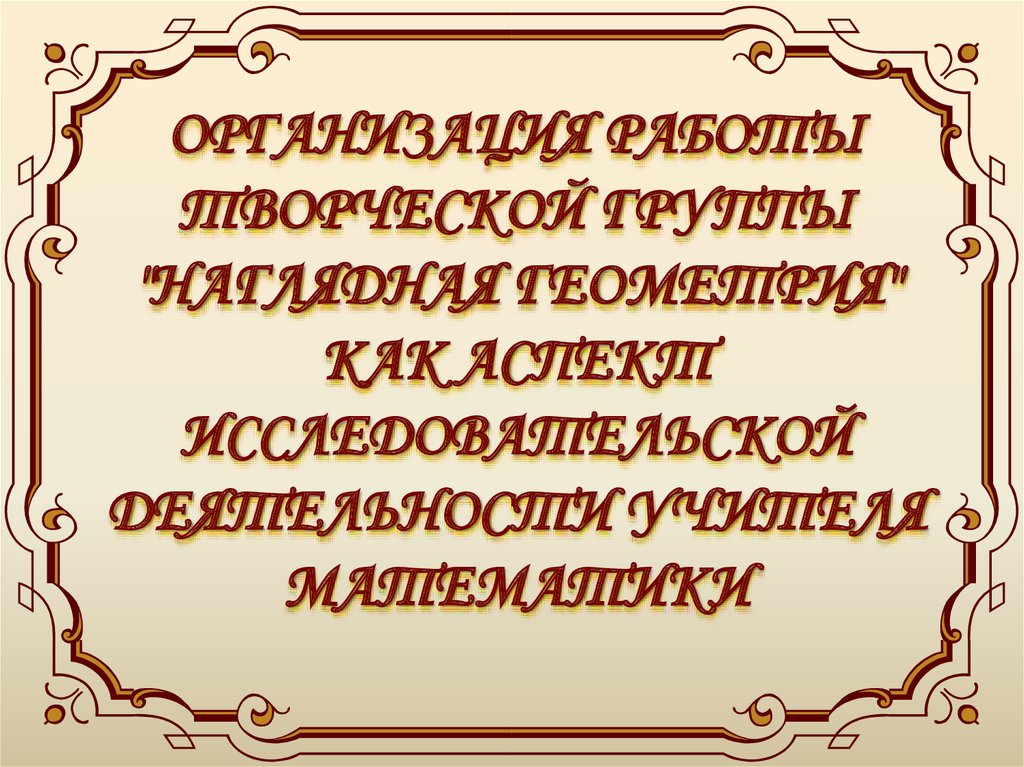Организация работы творческой группы "Наглядная геометрия" как аспект исследовательской деятельности учителя математики