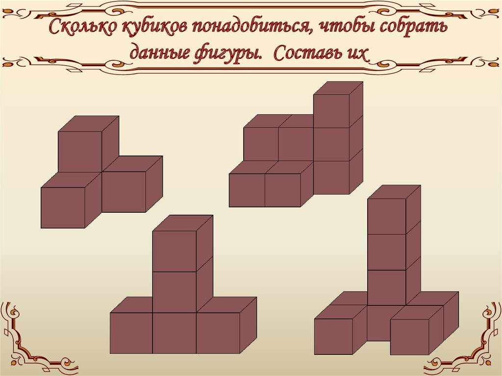 Сколько кубиков понадобиться, чтобы собратьданные фигуры. Составь их