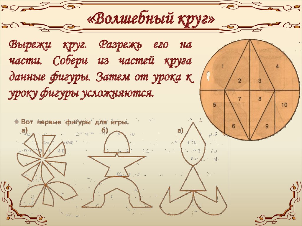 «Волшебный круг»Вырежи круг. Разрежь его на