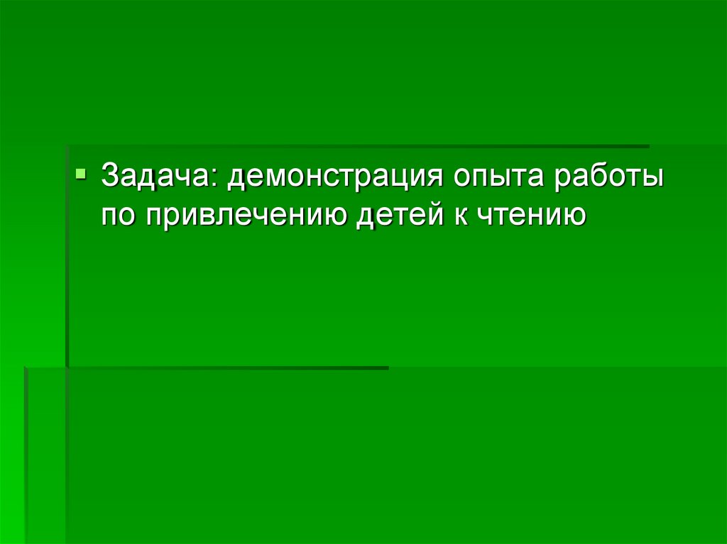 Задача: демонстрация опыта работыпо привлечению детей к чтению