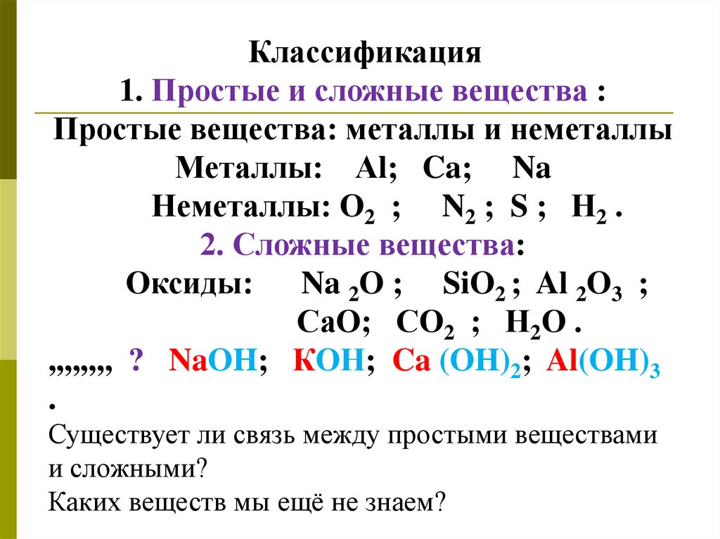 Классификация1. Простые и сложные вещества :