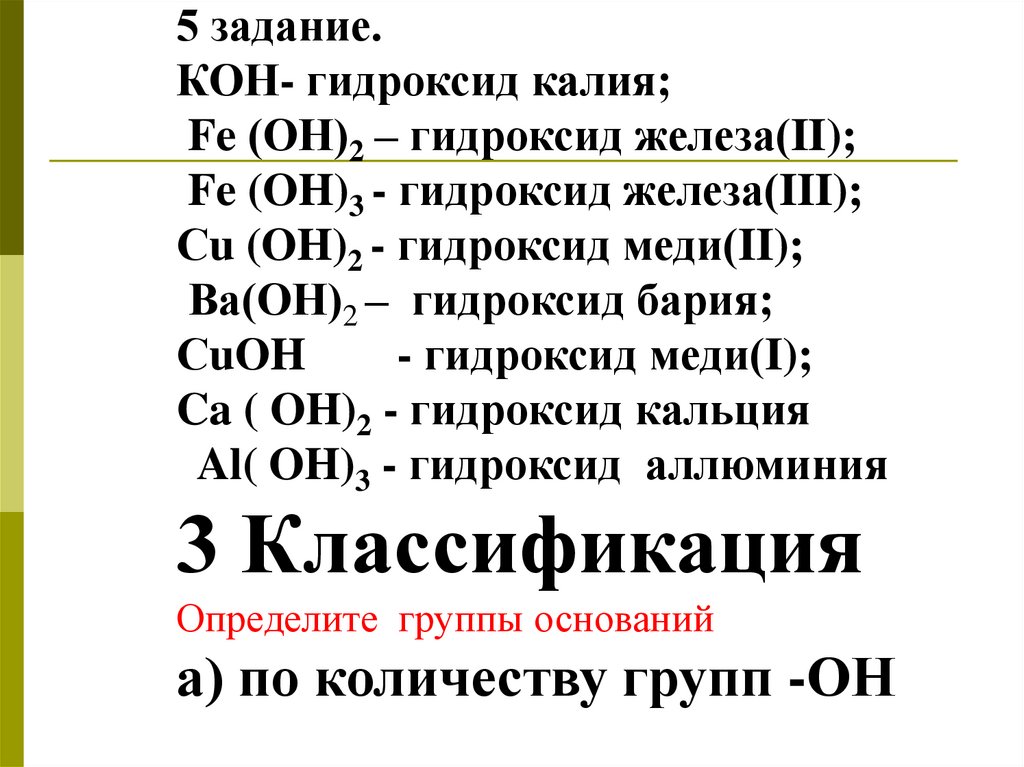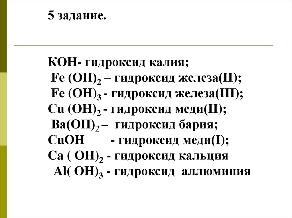 5 задание.КОН- гидроксид калия;