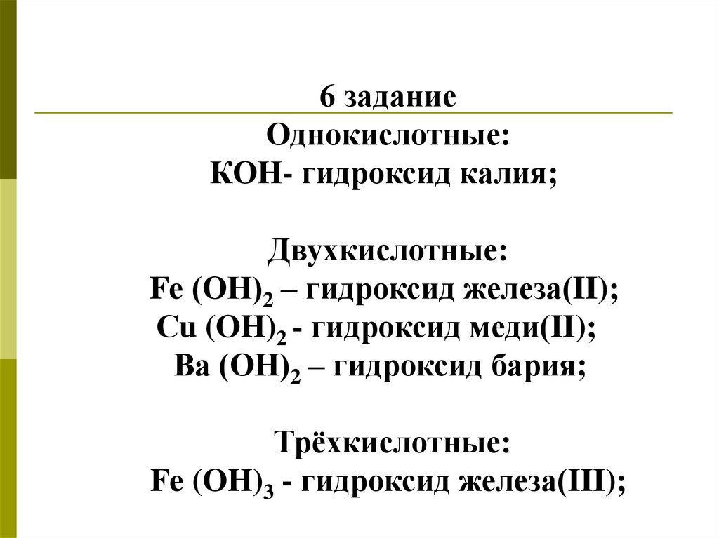6 заданиеОднокислотные: