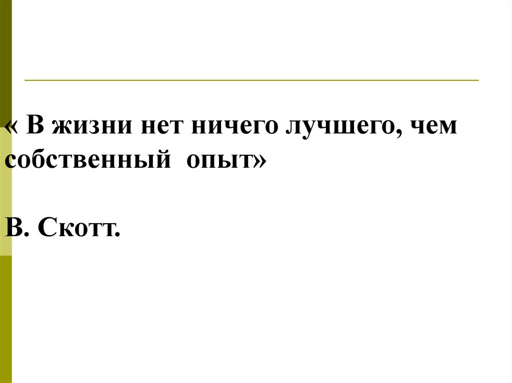 « В жизни нет ничего лучшего, чемсобственный опыт»