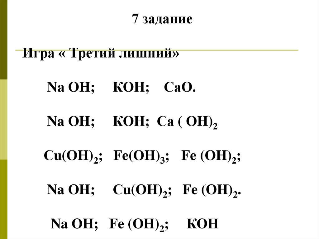 ,,,,,,,, ? NaOH; КОН; Ca (OH)2; Al(OH)3
