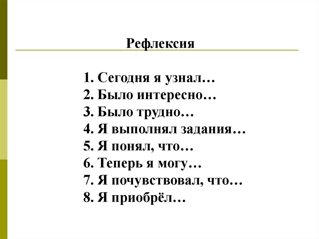 Рефлексия1. Сегодня я узнал…