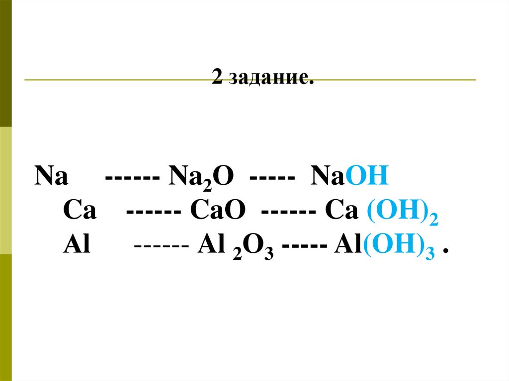 2 задание.Na ------ Na2O ----- NaOH