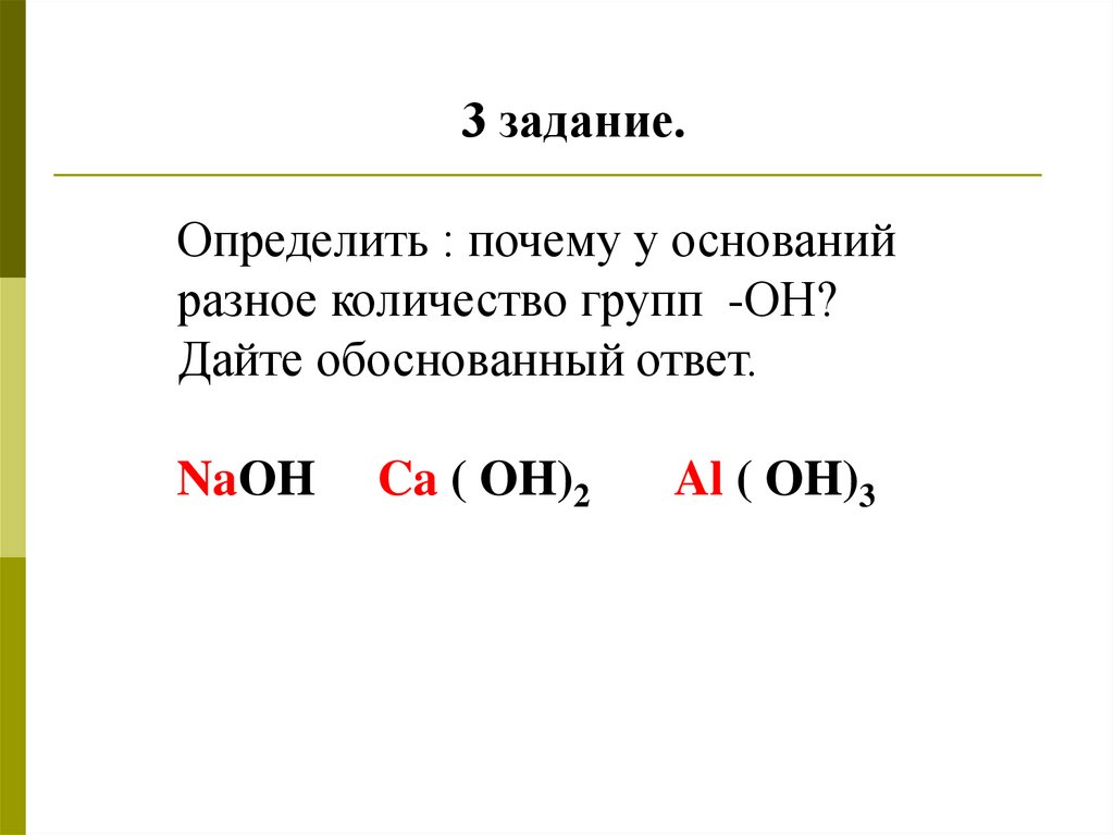 3 задание.Определить : почему у оснований