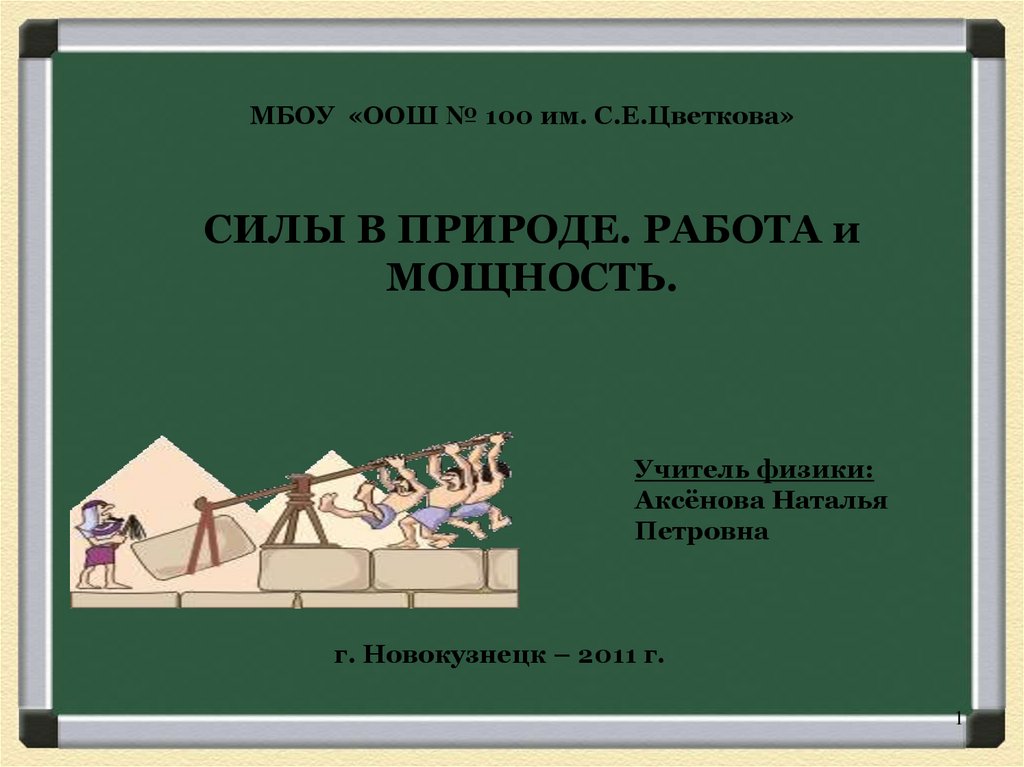МБОУ «ООШ № 100 им. С.Е.Цветкова»СИЛЫ В ПРИРОДЕ. РАБОТА и