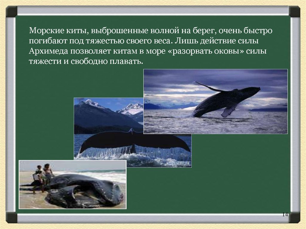 Морские киты, выброшенные волной на берег, очень быстропогибают под тяжестью своего веса. Лишь действие силы
