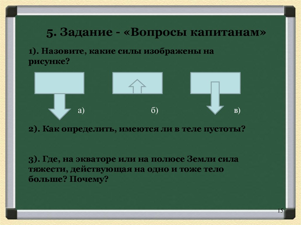 5. Задание - «Вопросы капитанам»1). Назовите, какие силы изображены на
