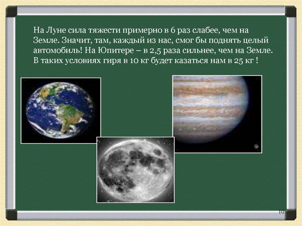 На Луне сила тяжести примерно в 6 раз слабее, чем наЗемле. Значит, там, каждый из нас, смог бы поднять целый