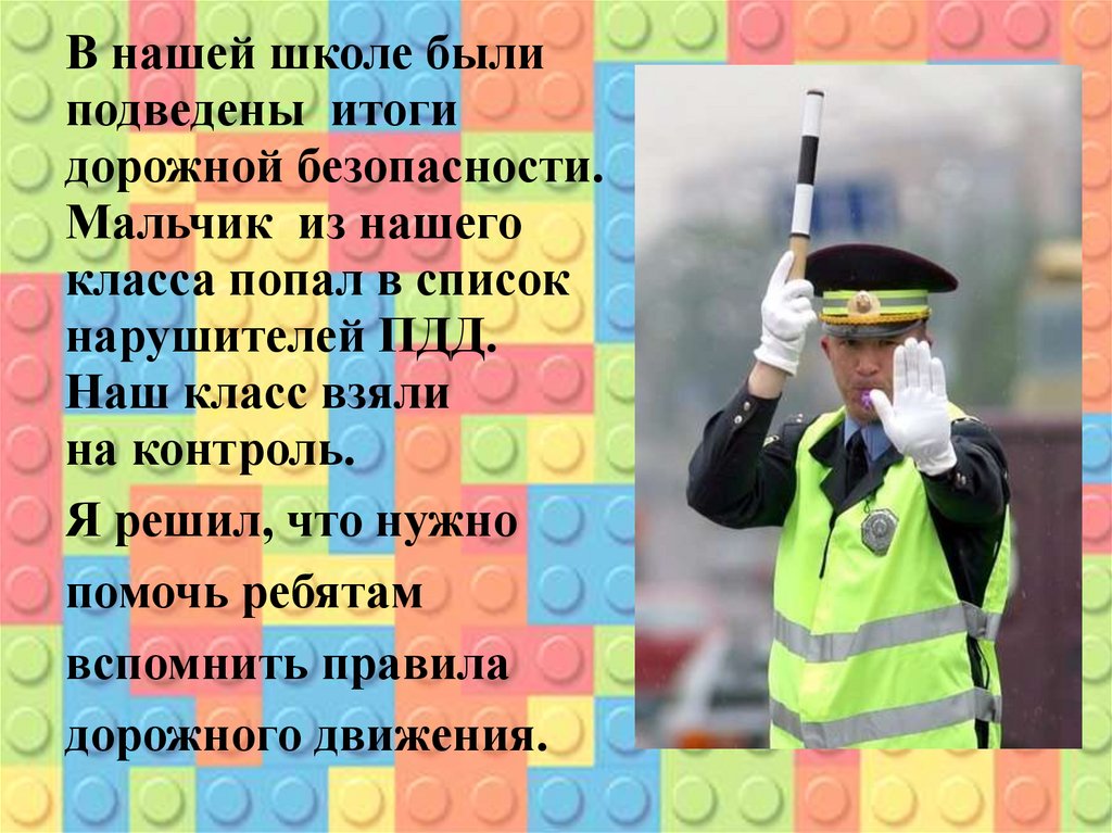 8. Цель: помочь одноклассникам вспомнить и закрепить знания по ПДД через игру в конструктор Лего.