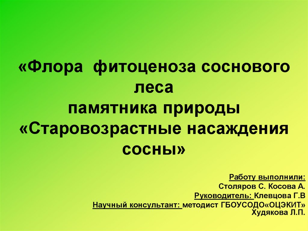 Флора фитоценоза соснового леса памятника природы «Старовозрастные насаждения сосны»