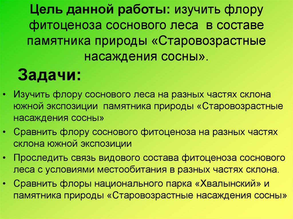 Цель данной работы: изучить флоруфитоценоза соснового леса в составе