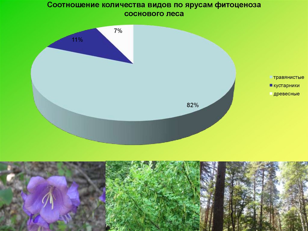 Соотношение количества видов по ярусам фитоценозасоснового леса