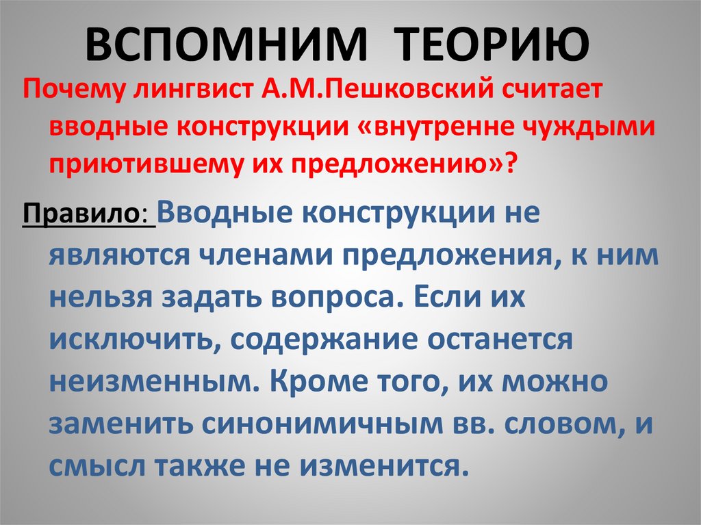ВСПОМНИМ ТЕОРИЮПочему лингвист А.М.Пешковский считает