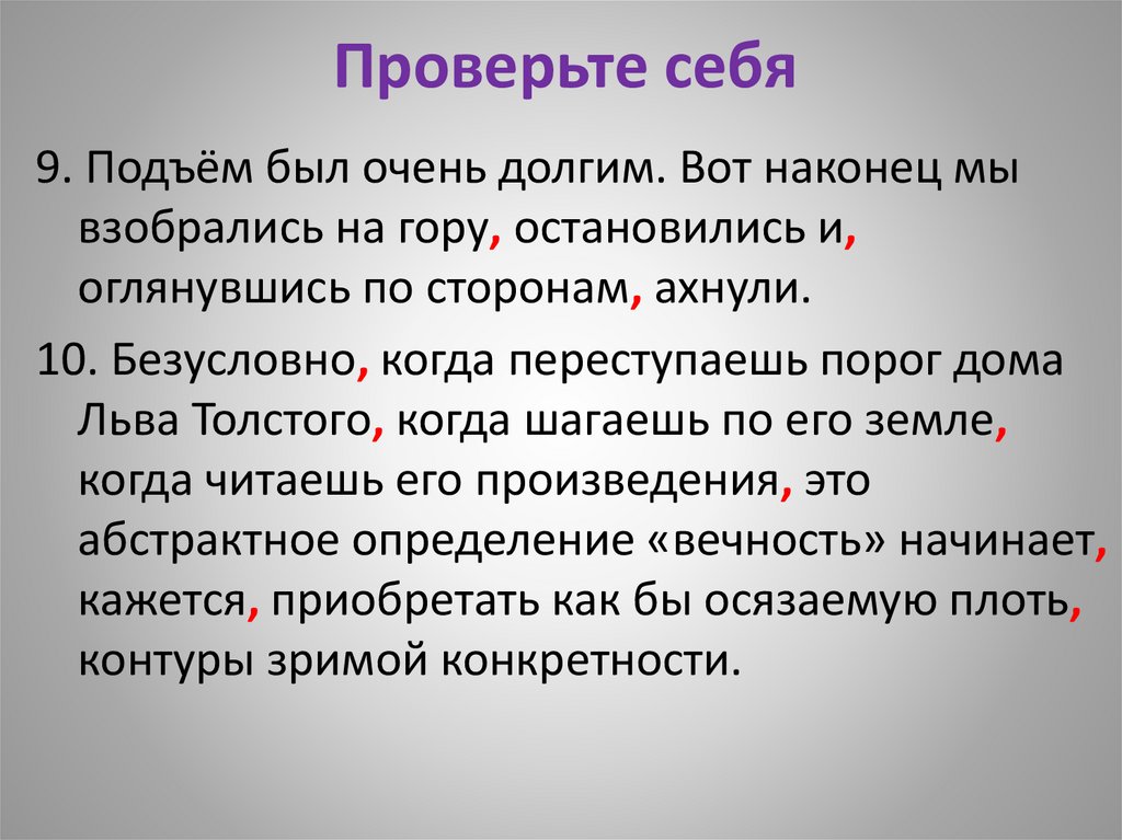 Проверьте себя9. Подъём был очень долгим. Вот наконец мы