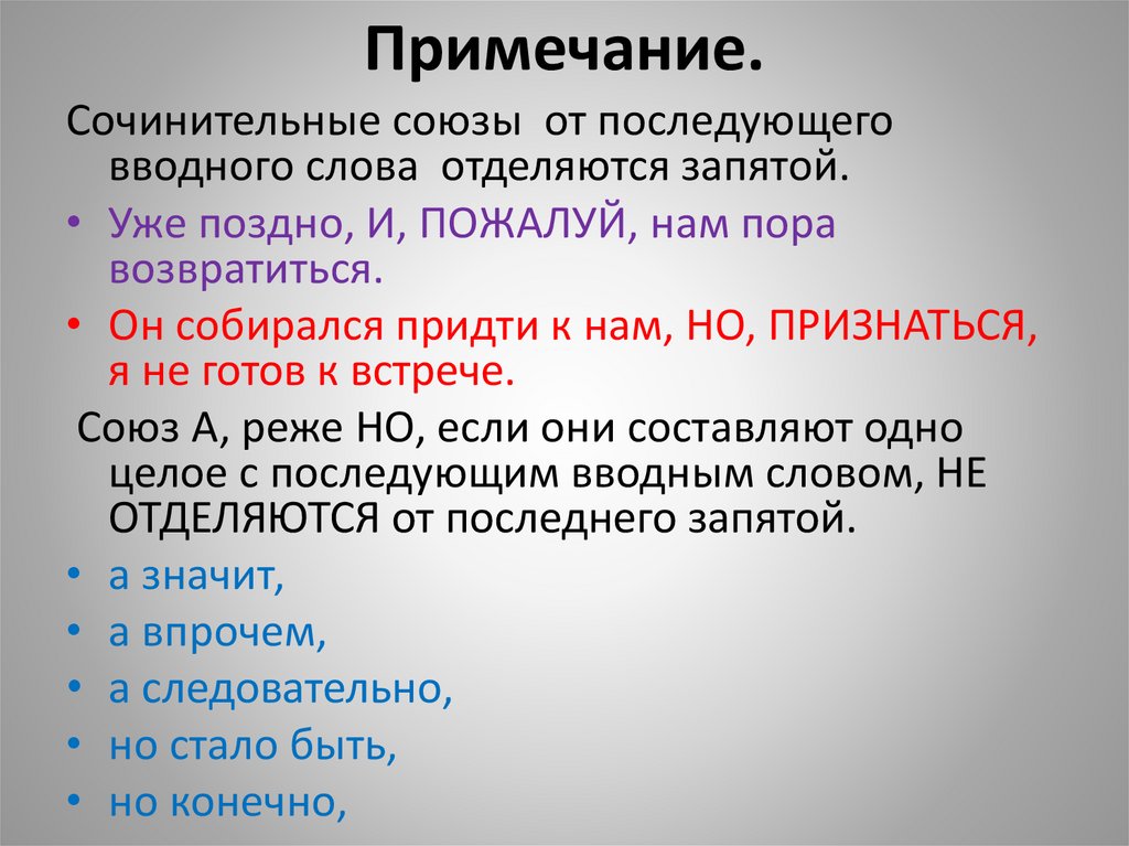 • Он собирался придти к нам, НО, ПРИЗНАТЬСЯ,