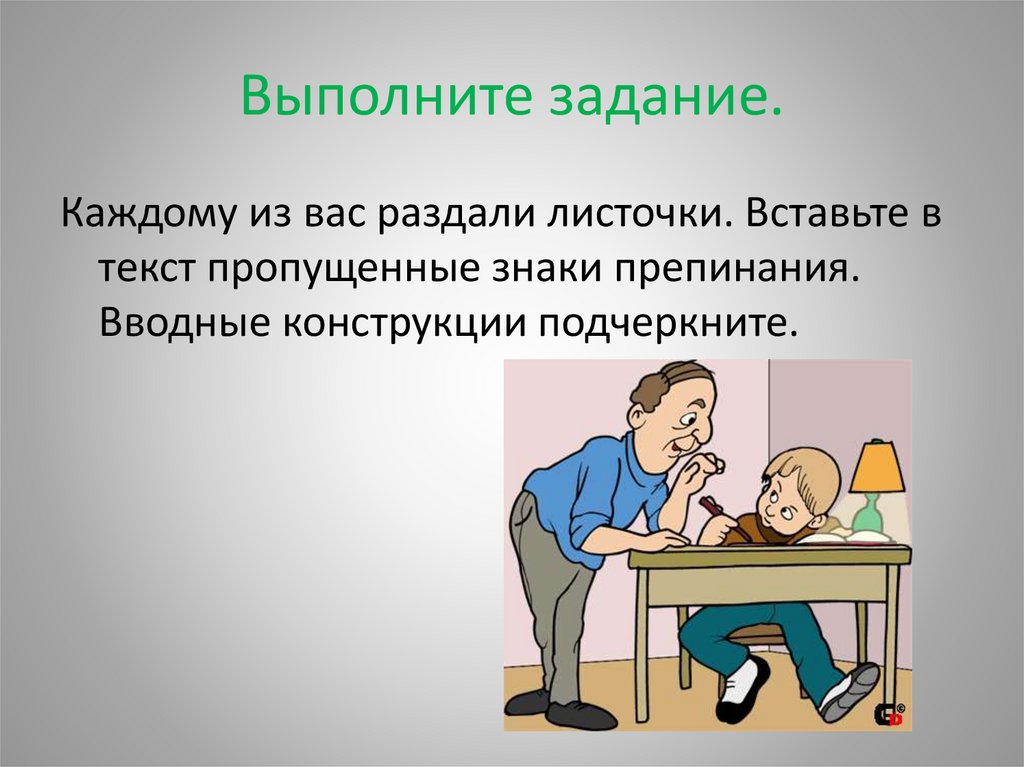 Выполните задание.Каждому из вас раздали листочки. Вставьте в