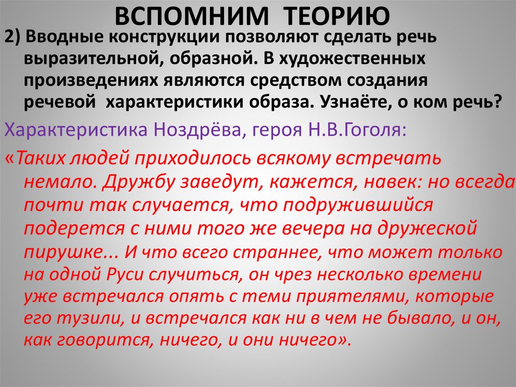 ВСПОМНИМ ТЕОРИЮ2) Вводные конструкции позволяют сделать речь