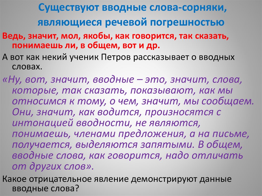 Существуют вводные слова-сорняки,являющиеся речевой погрешностью