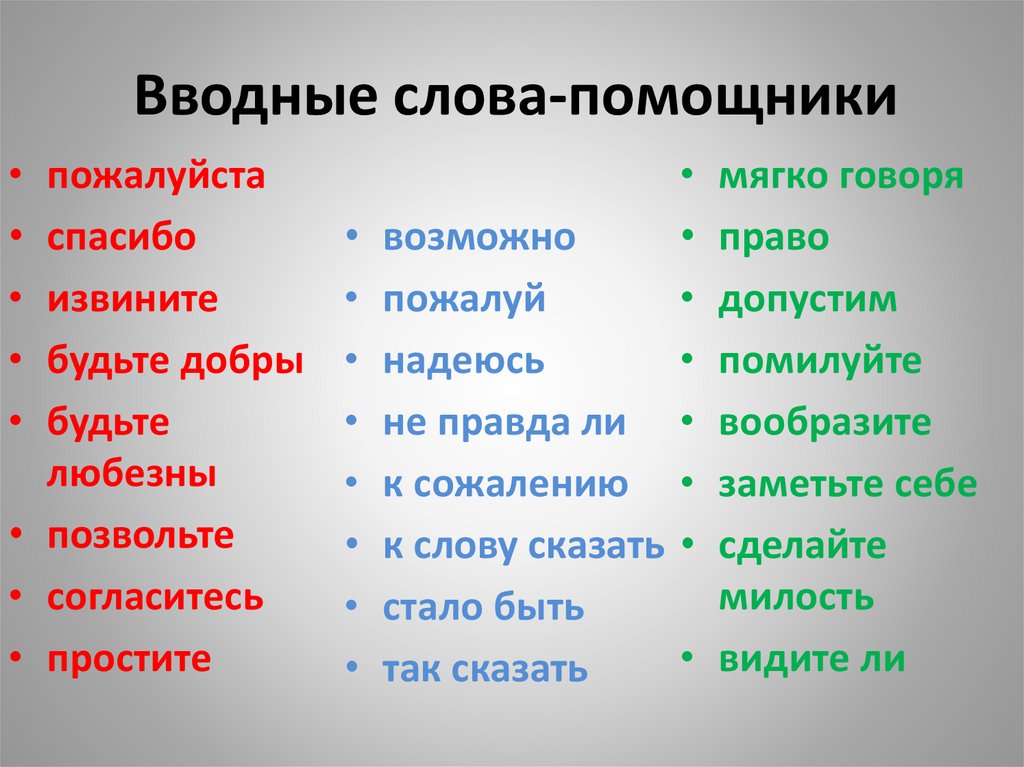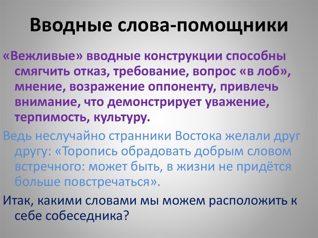 Вводные слова-помощники«Вежливые» вводные конструкции способны