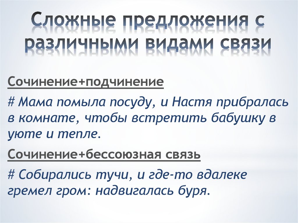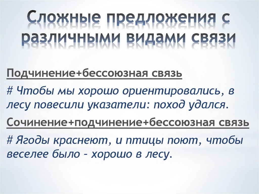 Подчинение+бессоюзная связь# Чтобы мы хорошо ориентировались, в