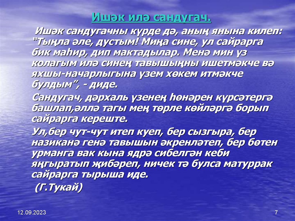 “Тыңла әле, дустым! Миңа сине, ул сайрарга