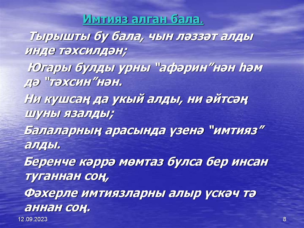Имтияз алган бала.Тырышты бу бала, чын ләззәт алды