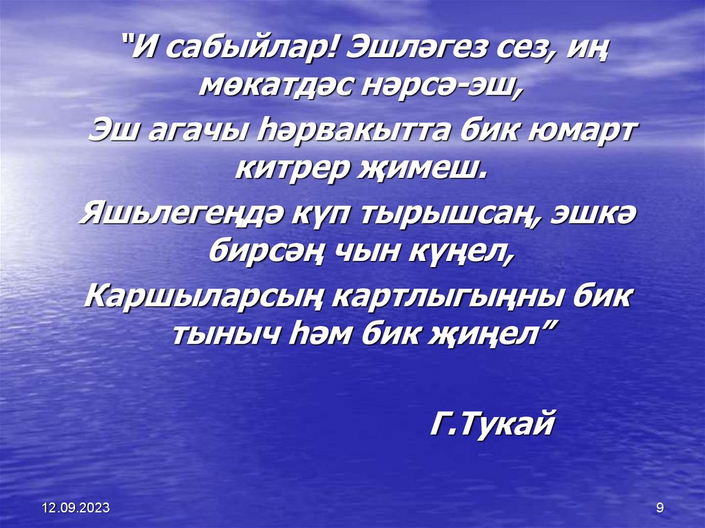 “И сабыйлар! Эшләгез сез, иңмөкатдәс нәрсә-эш,