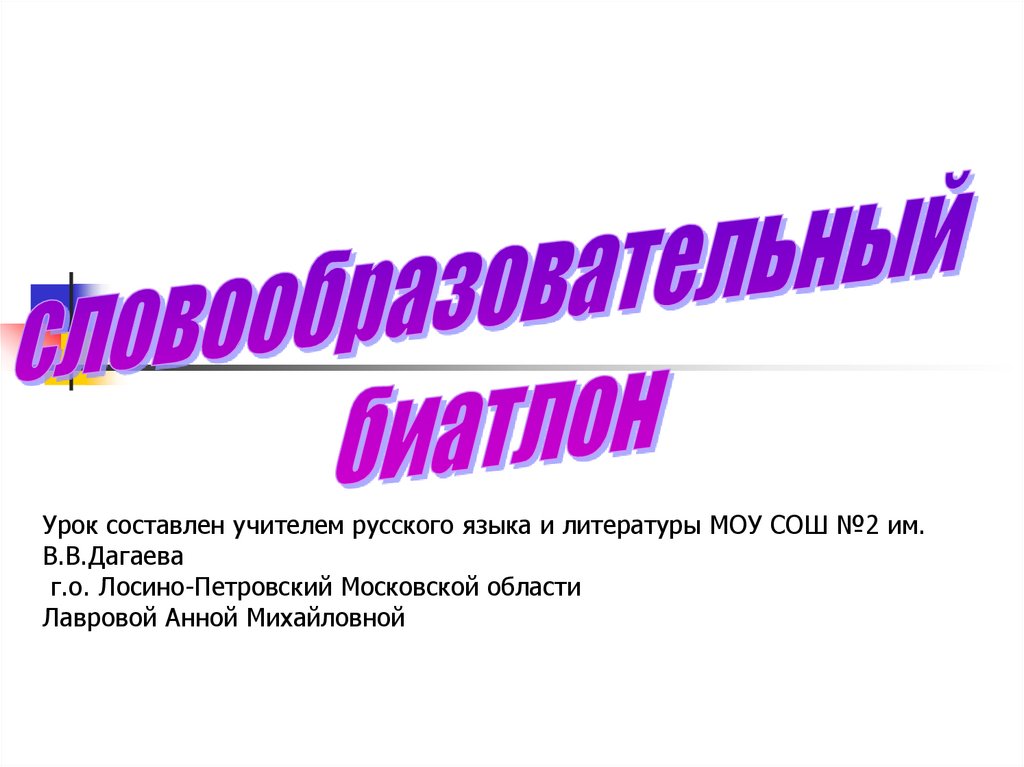 Урок составлен учителем русского языка и литературы МОУ СОШ №2 им.В.В.Дагаева