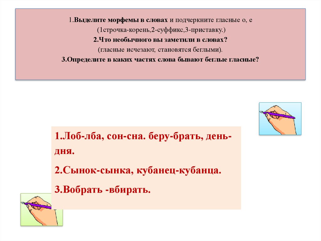 Тема: Беглые гласныеЦели: познакомить с понятием «беглость гласных», с
