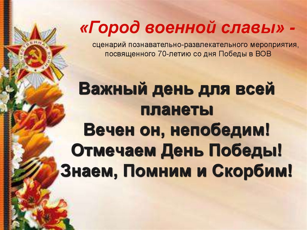 «Город военной славы» сценарий познавательно-развлекательного мероприятия, посвященного 70-летию со дня Победы в ВОВ