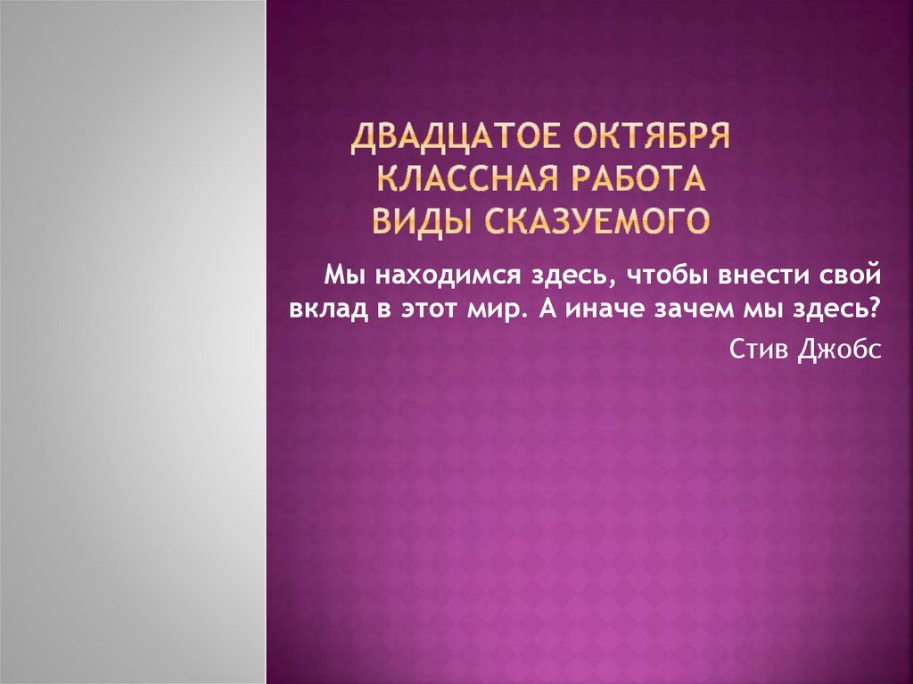 Мы находимся здесь, чтобы внести свойвклад в этот мир. А иначе зачем мы здесь?