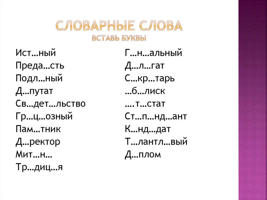 Подготовитьсяк контрольному словарному диктанту;
