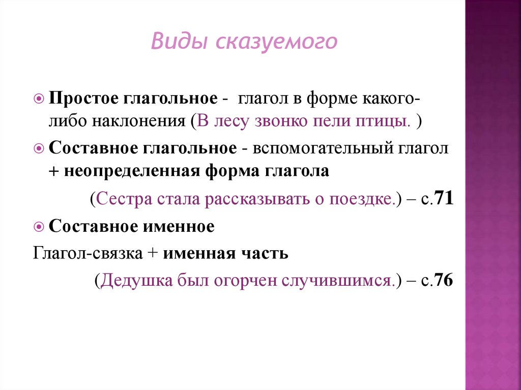 Виды сказуемого