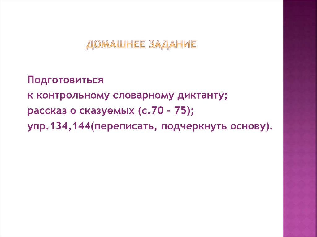 рассказ о сказуемых (с.70 – 75);