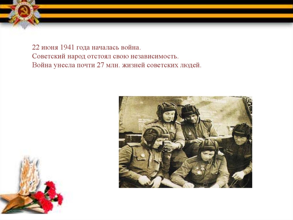 22 июня 1941 года началась война.Советский народ отстоял свою независимость.