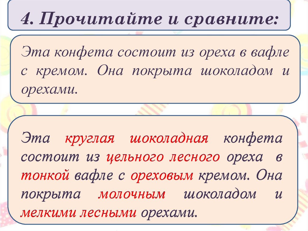 4. Прочитайте и сравните:Эта конфета состоит из ореха в вафле