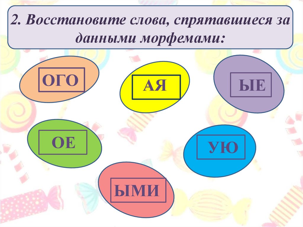 2. Восстановите слова, спрятавшиеся заданными морфемами:
