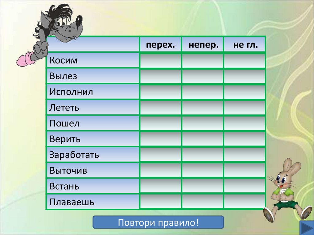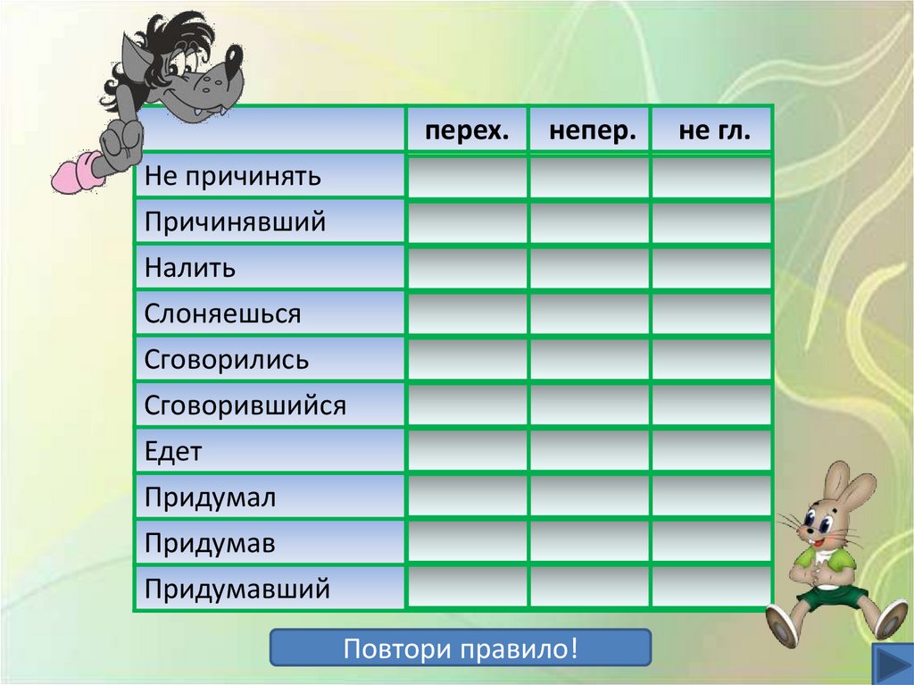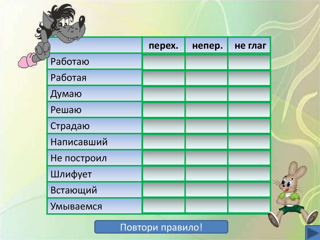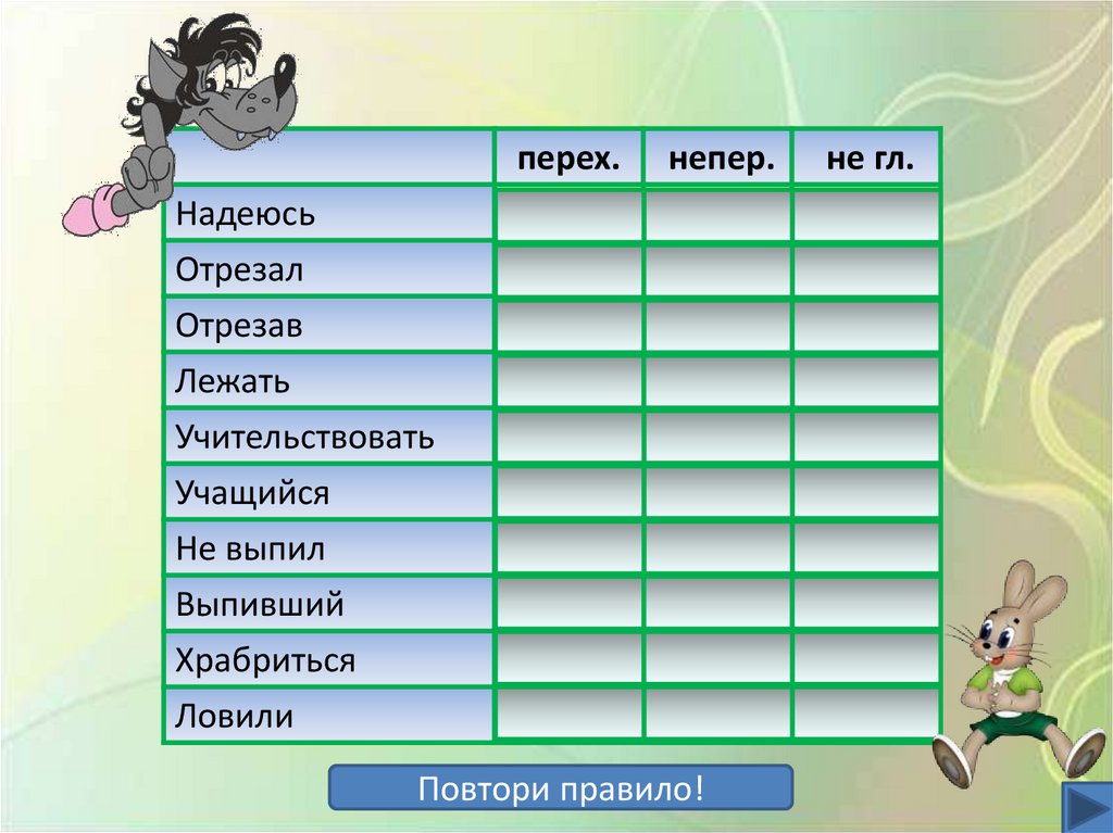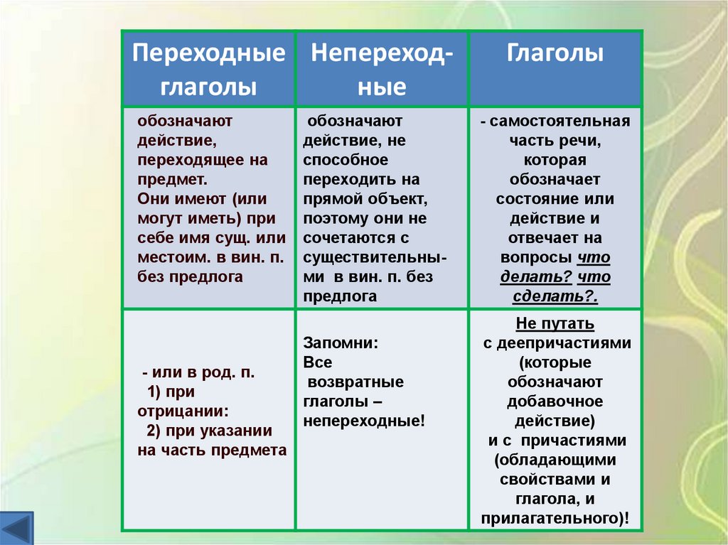 Глаголы переходные и непереходные. Интерактивный тест. 6 класс