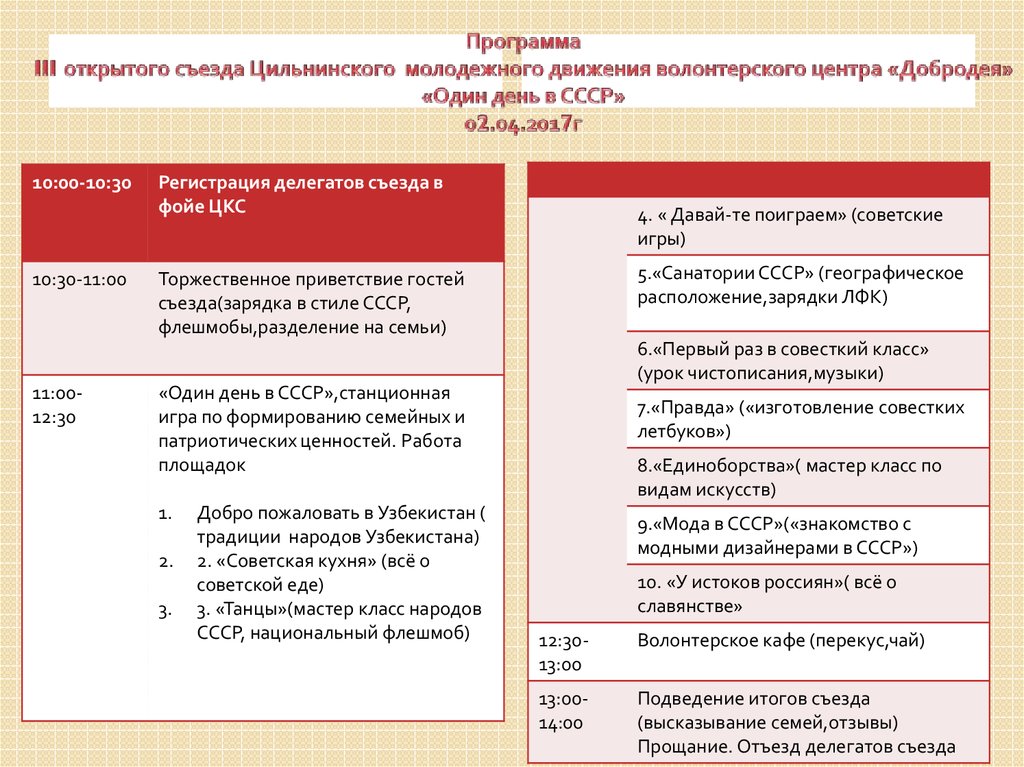 Один день в СССР. III открытый съезд Цильнинского молодежного движения волонтерского центра «Добродея»