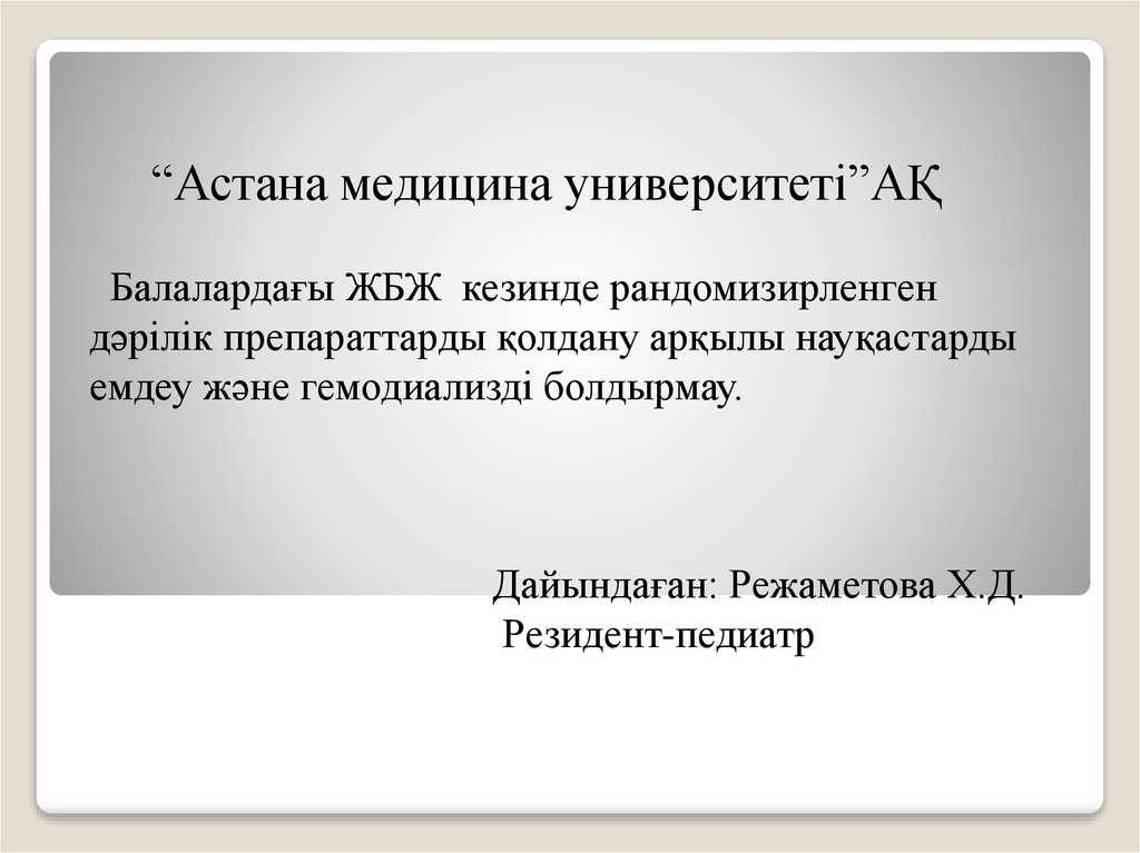 “Астана медицина университеті”АҚБалалардағы ЖБЖ кезинде рандомизирленген