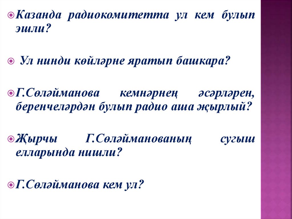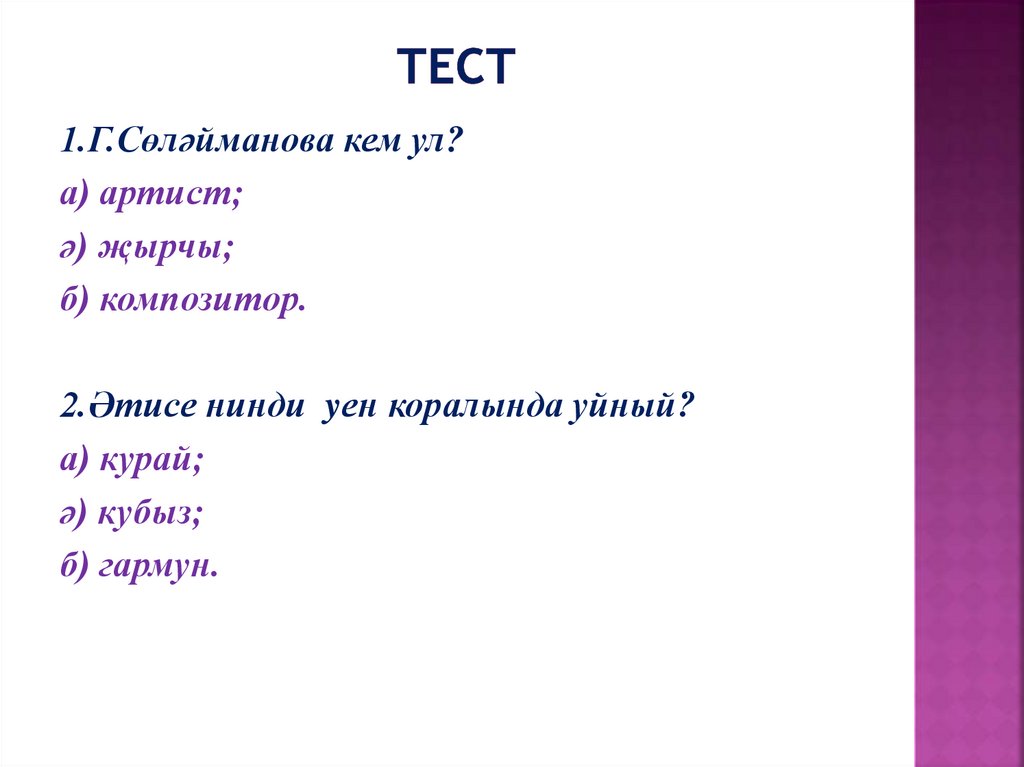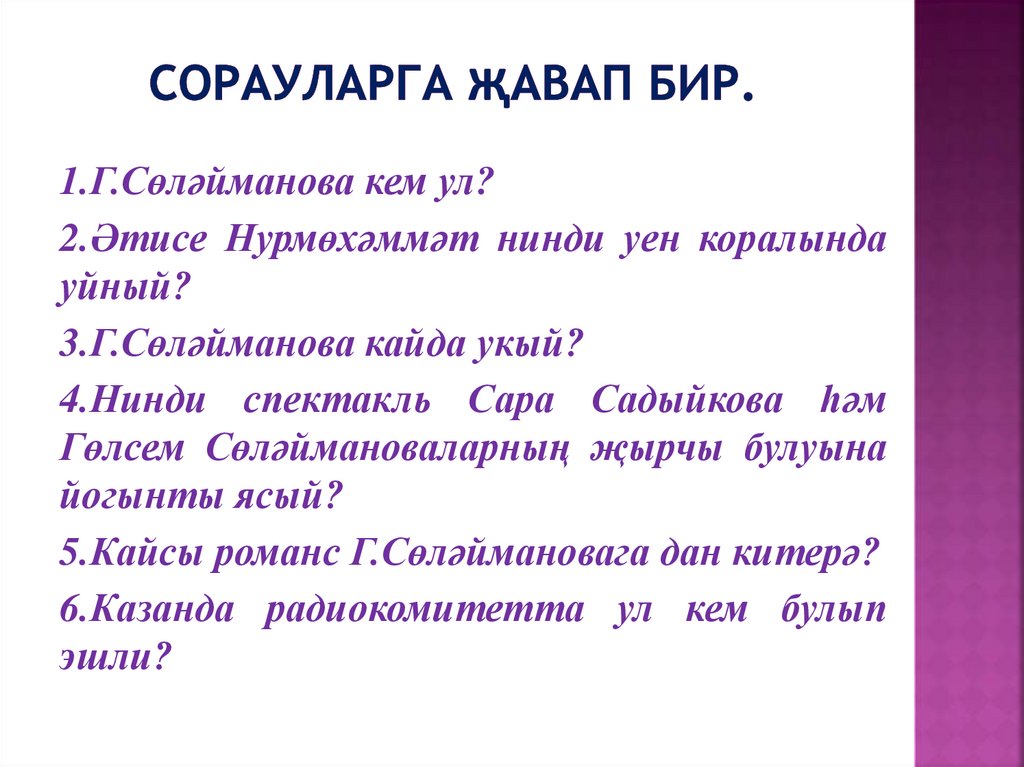 1.Г.Сөләйманова кем ул?а) артист;